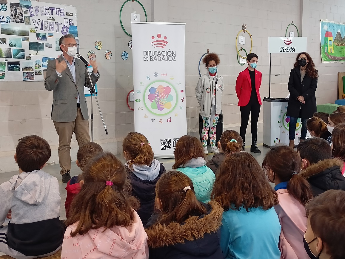 La diputada delegada de Promedio, Raquel Del Puerto, y el alcalde de Don Benito, José Luis Quintana, han estado presentes esta mañana en una de las actividades programadas en el CEIP Nuestra Señora del Pilar y que han concluido con la lectura de manifiestos en favor del cumplimiento del Objetivo de Desarrollo Sostenible 6, relativo al agua y el saneamiento.