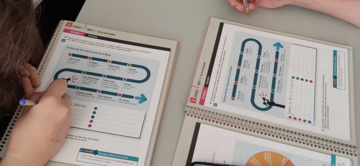 Para la puesta en marcha de esta acción, la Diputación de Badajoz ha adquirido el material didáctico ECOS del grupo Santillana del Objetivo de Desarrollo Sostenible 5, Igualdad de género. Este material se compone de tres elementos; un porfolio docente, un cuaderno de acción para cada alumno/a y una plataforma digital para trabajar conjuntamente y compartir contenido. El profesorado aborda el contenido del material de forma directa o implementándolo en su materia, de tal forma que el alumnado adquiera los conocimientos teóricos para llevar acciones que contribuyan a las metas que persigue el ODS 5 en su entorno más cercano.